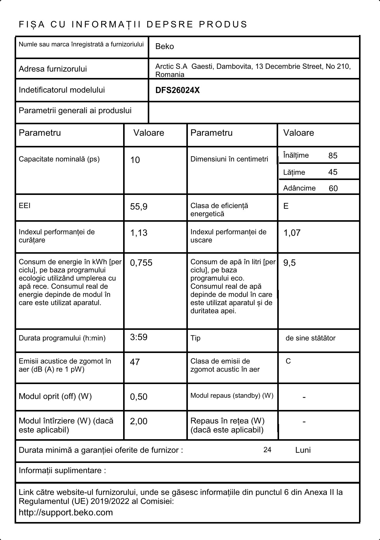JSON product data for Beko DFS26024X